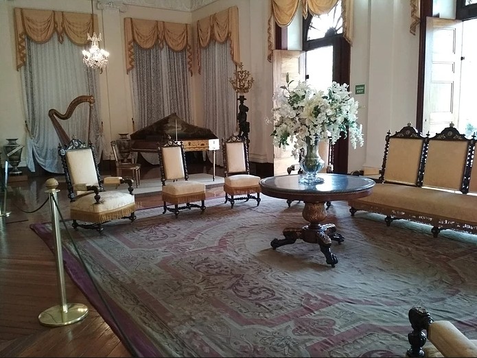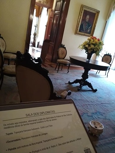 O Palácio Imperial é o sexto museu mais visitado do país. Na chegada somos recebidos pela equipe de manutenção, que é poliglota e já te entrega pantufas para que nenhum arranhão aconteça no piso do palácio. Tudo é mantido com muito cuidado e são peças reais. Não é permitido fotografar nem filmar dentro do recinto. (Perdão, Dom Pedro, mas eu quebrei as regras).